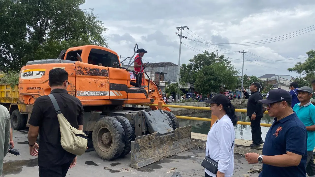 Saat meninjau kerja bakti dan juga talut di Kali Banger, wali kota Semarang Agustina Wilujeng melihat jika Kali Banger sudah banyak dipenuhi sampah yang tengah dikeruk menggunakan ekskavator agar tak menyumbat aliran.