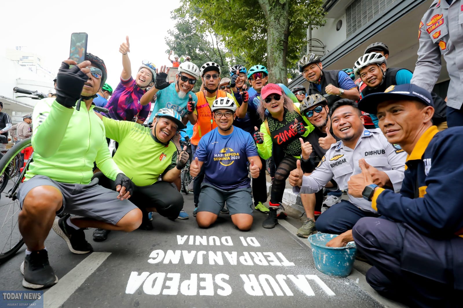 Sementara itu, lebih dari 600 pesepeda turut ambil bagian dalam acara ini. Rangkaian kegiatan dimulai sejak pagi, termasuk konvoi santai dari Pendopo ke Balai Kota Bandung, edukasi keselamatan berkendara, hingga aksi simbolis pengecatan marka jalur sepeda di kawasan Jalan Asia Afrika.