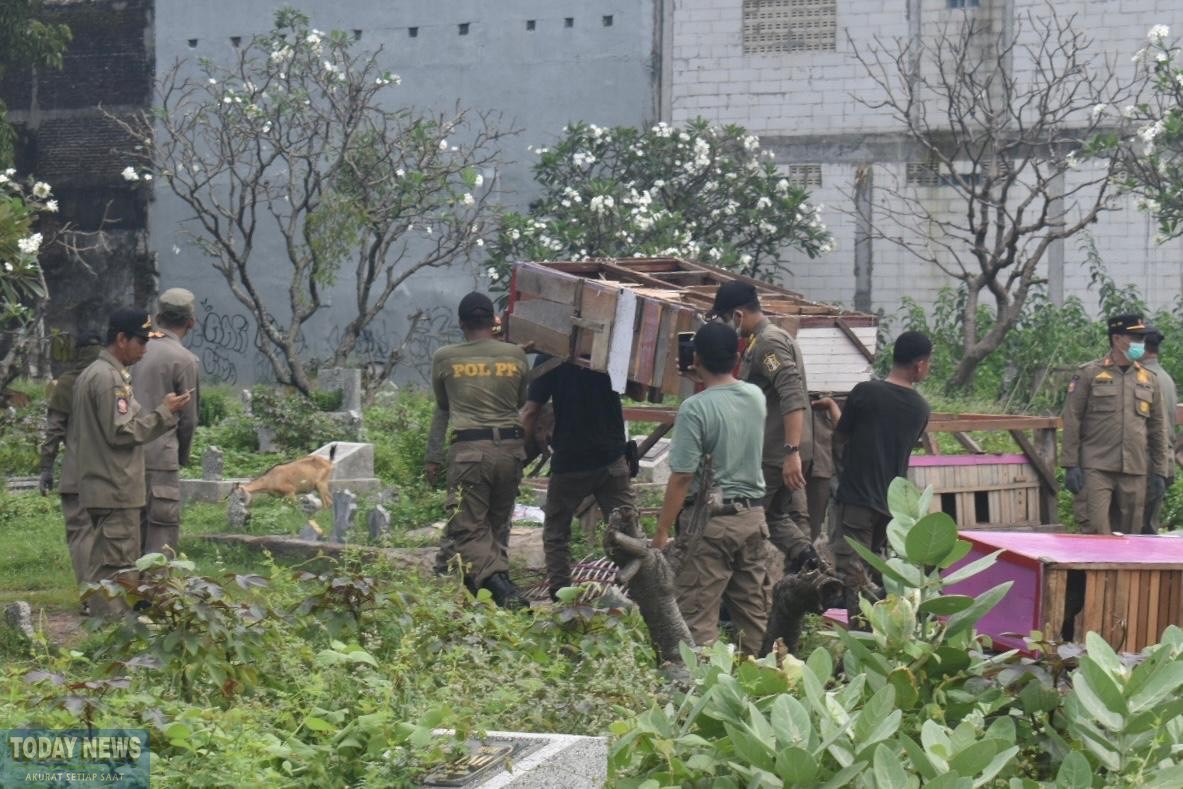 TODAYNEWS.ID – Pemerintah Kota Surabaya melalui Satpol PP melakukan penataan kawasan Tempat Pemakaman Umum (TPU) Rangkah dengan membongkar sejumlah bangunan nonpermanen pada Kamis (29/5/2025).