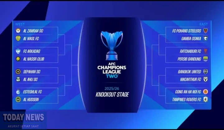 Hasil drawing babak 16 besar ACL Two 2025/2026. (Istimewa)TODAYNEWS.ID – Genderang babak 16 besar AFC Champions League Two (ACL 2) 2025/2026 sudah ditabuh. Berdasarkan hasil drawing ACL 2 yang berlangsung di Kuala Lumpur, Malaysia, Selasa (30/12/2025), wakil Indonesia, Persib Bandung akan bertemu tim asal Thailand, Ratchaburi.