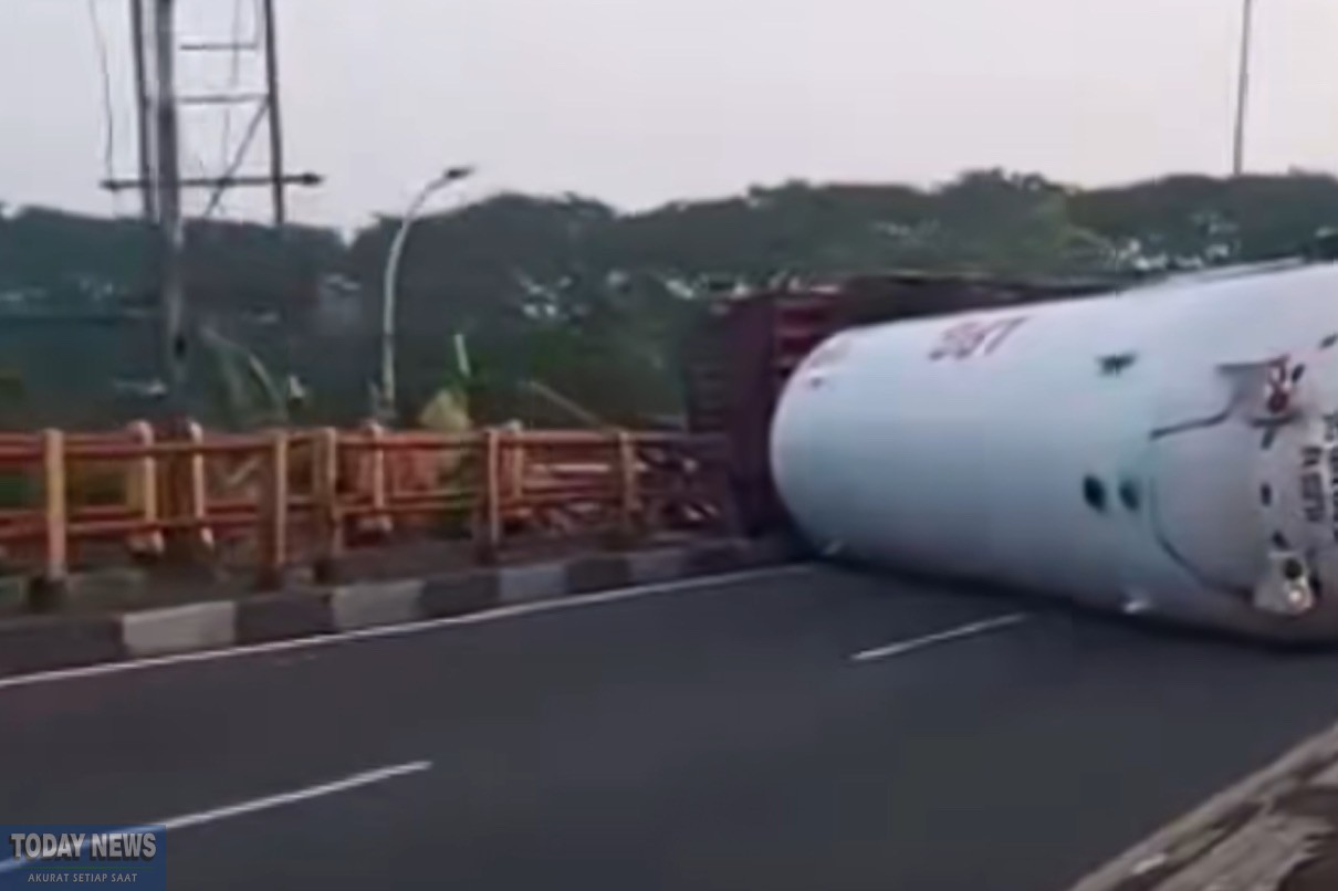 Truk Pengangkut LPG Terguling di Jembatan Mertex, Arus Lalu Lintas Lumpuh Total
